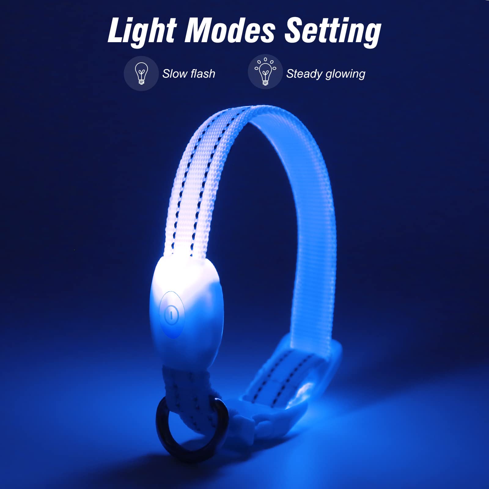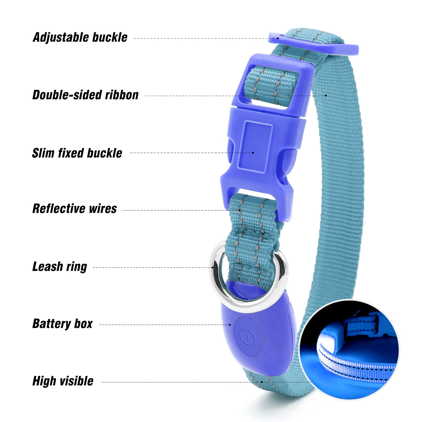 Visinite Light Up Dog Collars for Small Dogs,LED Dog Collar Light Rechargeable,Fully Adjustable Lighted Dog Collar,Glow in The Dark Dog Collars with Dog Lights for Night Walking,Blue