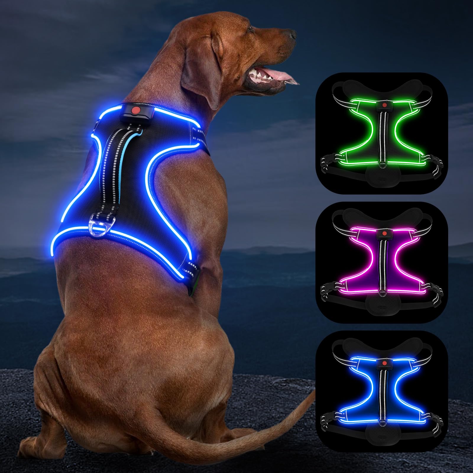 - 【Protect and Spot Your Dog】Vizbrite LED dog harness is super bright in the dark, which means it will keep your dog highly visible when your dog wears it. Greatly improve the safety of your pet, protect your dog from being hit by cars, bicycles or runners. Perfect for night walking and Spot your dog(No matter how black their hair is)